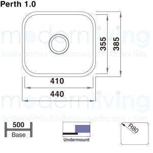 Astracast Onyx 1.0 Single Undermount Kitchen Sink – 585 x 485mm – Stainless Steel
