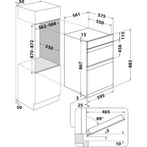 - Niche dimension (hxwxd): 875 mm – 888 mm x 560 mm – 568 mm x 550 mm